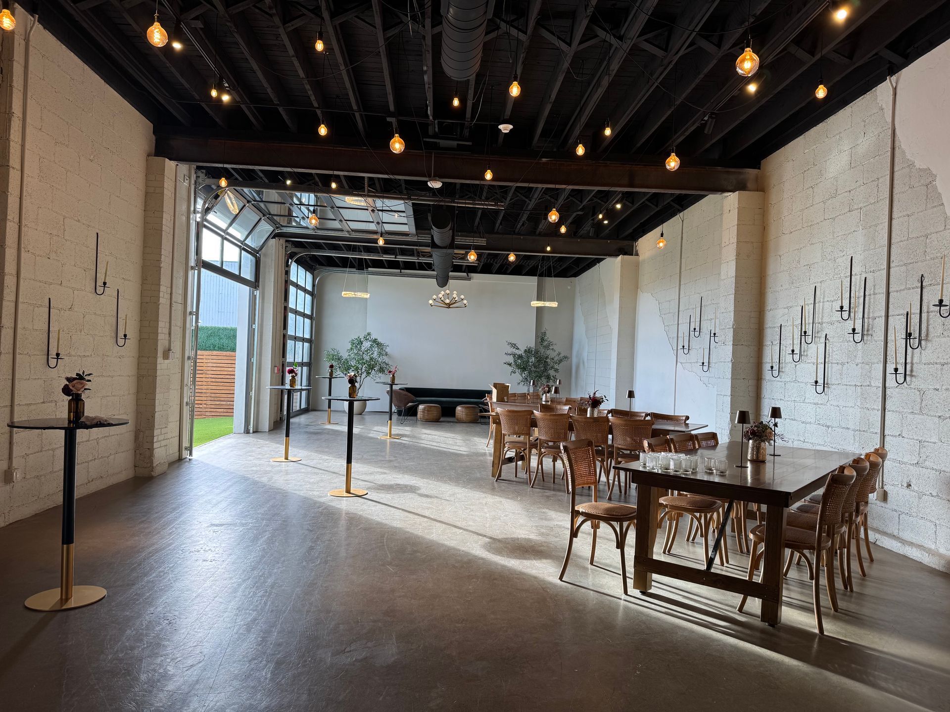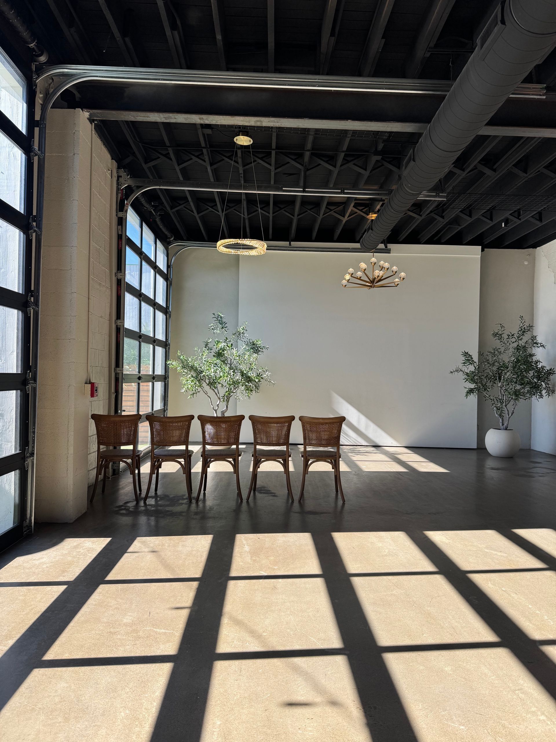With two 12-foot-tall glass garage doors and abundant south-facing light, the space is flooded with natural warmth throughout the day—creating a stunning backdrop and enhancing every moment and photo.