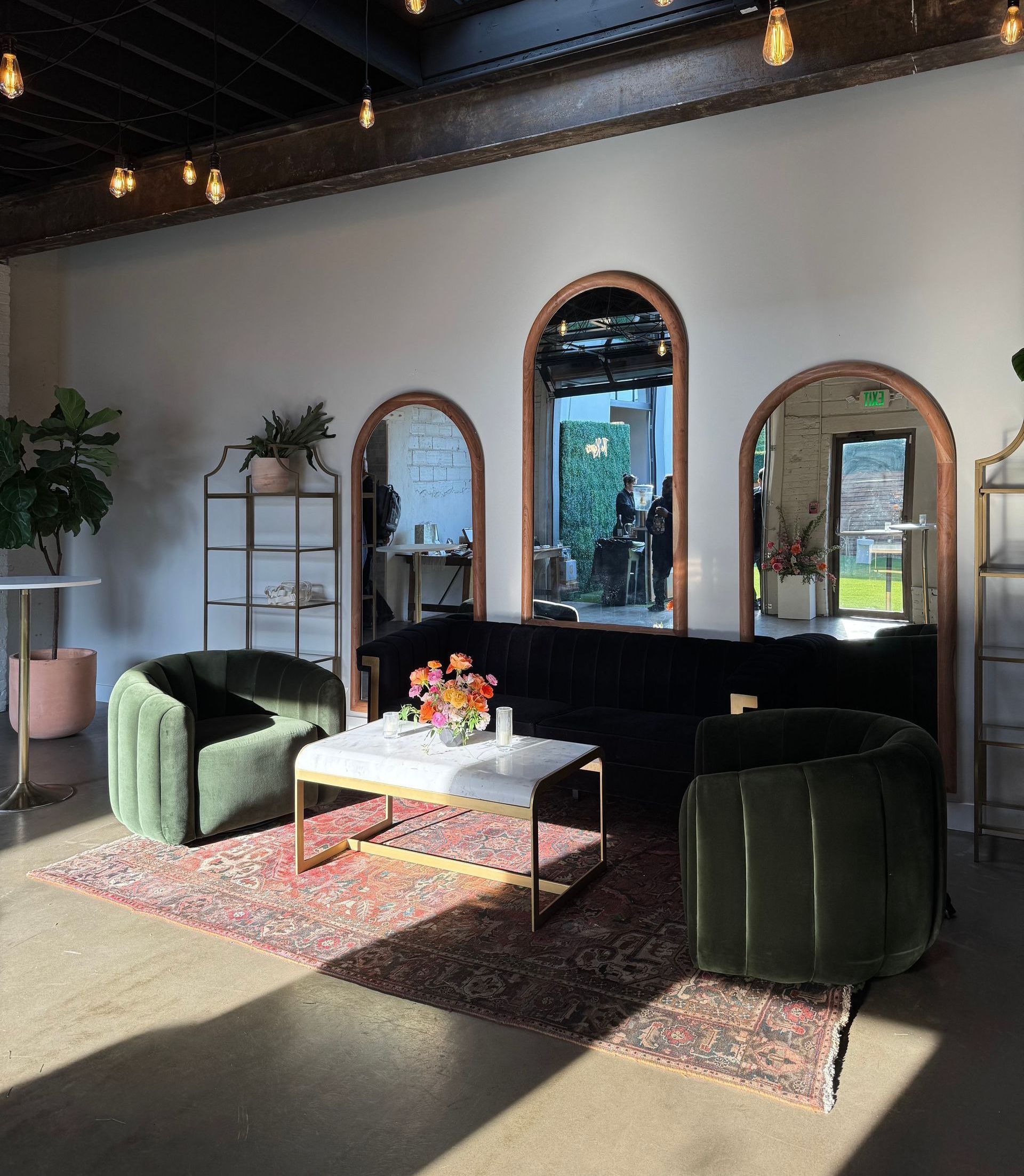 The Lounge offers a beautifully curated space that can connect each event space or standalone for a shower or private dinner. Great for your bar, buffet, and those late-