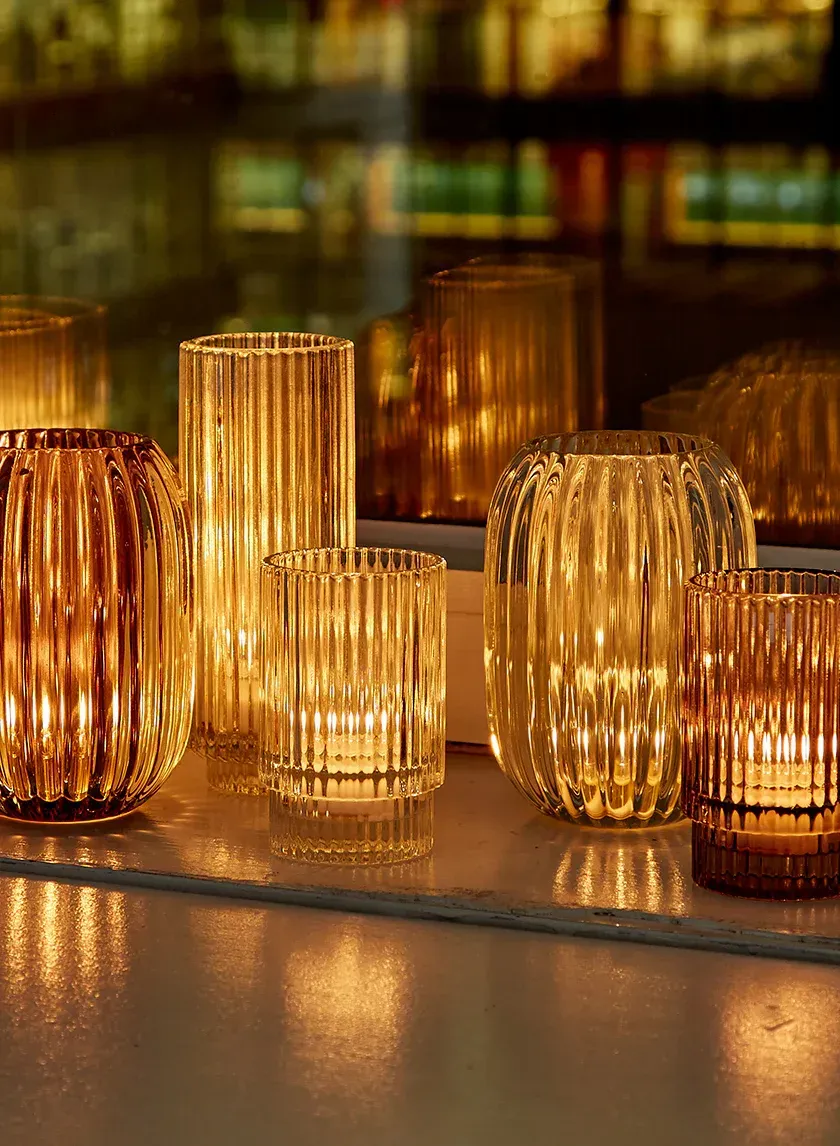 - Clear glass votive holders and battery tea lights (we do allow real candles)